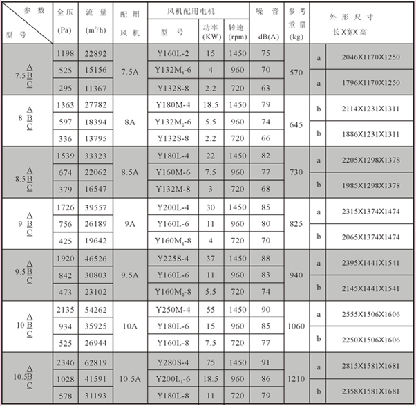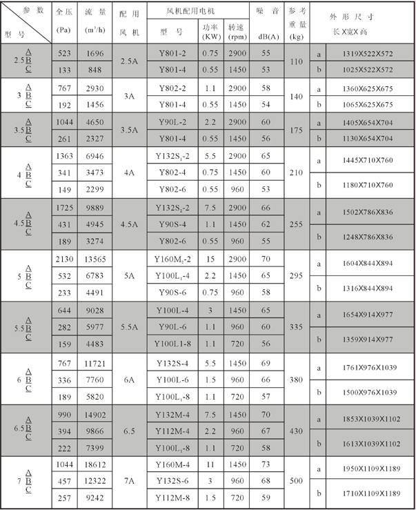 節(jié)能型混流式風(fēng)機(jī)箱性能參數(shù)