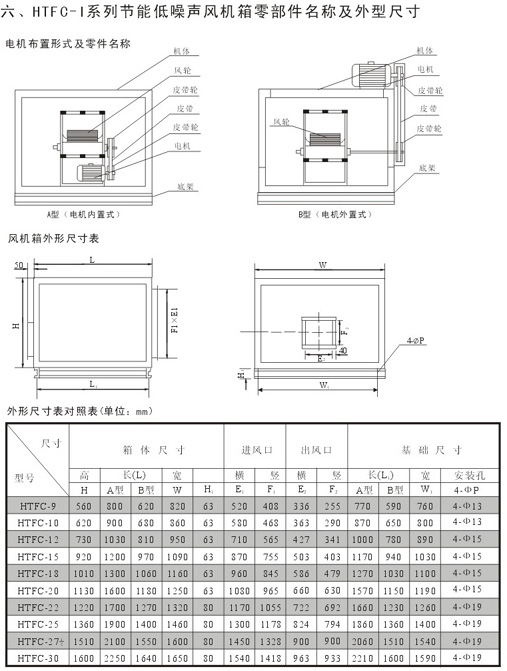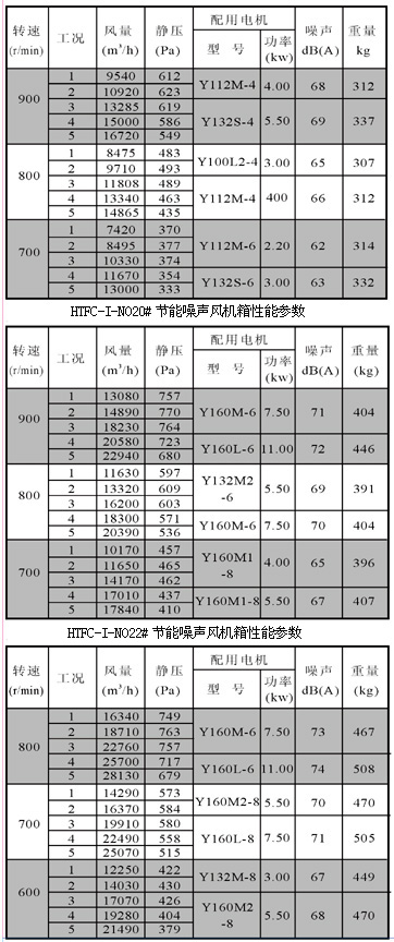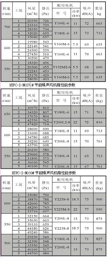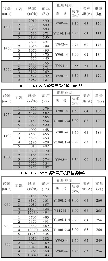 HTFC-I-NO09#節(jié)能低噪聲風機箱性能參數(shù)