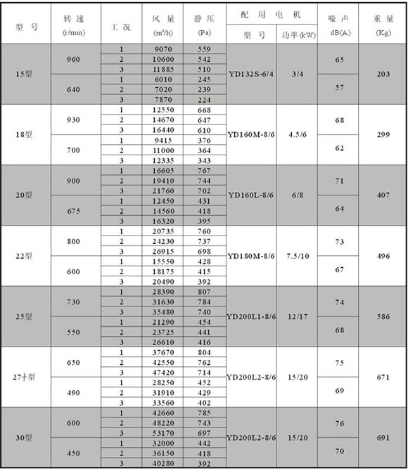 HTFC-II-no15-30#節(jié)能低噪聲風相箱性能參數(shù)(雙速)