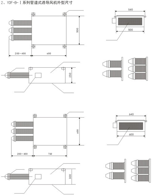 規(guī) 格: 誘導(dǎo)通風(fēng)機(jī)含YDF-A型及YDF-B型,葉輪直徑250、280