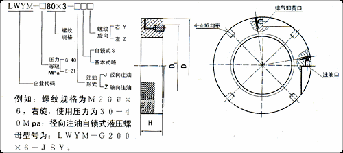 目前生產的液壓螺母規(guī)格為:M80×3-M220×6,注油方式分為軸向注油和徑向注油。壓力等級為40Mpa;21Mpa。