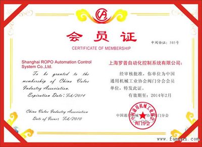 2010年1月5日熱烈祝賀羅普公司成為中國通用機械協(xié)會閥門分會會員!