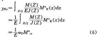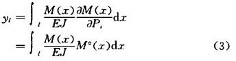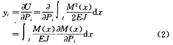 式(1)中僅考慮了彎矩的影響。此外,每一單元還將儲存有必定的剪切應變能,剪切應變能比曲折應變能小得多,可略往不計。由卡斯提里阿諾(Gastigliano)第必定理得: