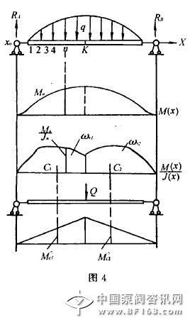 假如請求梁上某一點的撓度YK,則在K點上虛加單位力Q,并作出該單位力的M 0(x)。這樣就可以利用維力沙金的圖乘法求值了。這時,式(4)具有如下情勢: