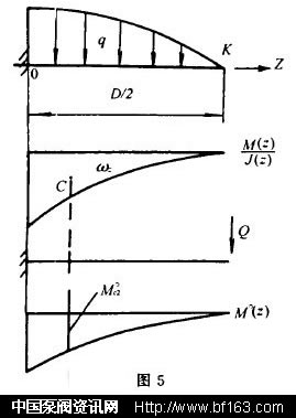 以A-A軸作為固定端,把Z軸方向半個蝶板D/2看成是懸臂梁,它所產生的撓度可以近似地認為是Z軸方向上的平行于X軸的各斷面的撓度。