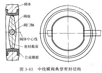 1.中線蝶閥的密封原理 中線蝶閥的典范密封結(jié)構(gòu)如圖3-83所示。