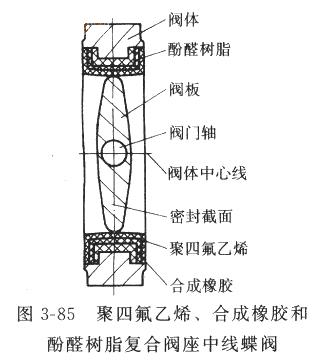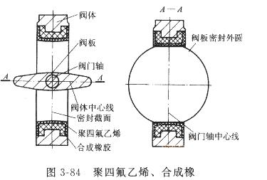 圖3-85所示密封結(jié)構(gòu)采用了聚四氟乙烯、合成橡膠和酚醛樹脂構(gòu)成復(fù)合閥座,使閥座在具有彈性的同時強(qiáng)度更好。
