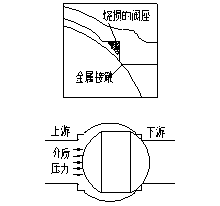 7、防火結(jié)構(gòu)當(dāng)意外產(chǎn)生火災(zāi)時(shí),閥座、填料等非金屬材料將被燒壞,大批泄漏的介質(zhì)可能更加增進(jìn)火勢(shì)。閥門(mén)的防火結(jié)構(gòu)可禁止介質(zhì)大批泄漏。在火災(zāi)后,各泄漏部位(球與閥體、閥桿與閥體、中法蘭)設(shè)計(jì)成金屬接觸,滿(mǎn)足防火請(qǐng)求。如圖,一旦閥座被燒損,球體在壓力作用下將直接和閥體上的金屬面接觸,從而禁止介質(zhì)大批從燒損的閥座處泄漏.