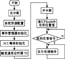 軟件重要分為2部分:一部分在主程序中實(shí)現(xiàn),包含DSP的系統(tǒng)設(shè)置、事件治理器初始化、常量初始化、使能DSP中斷、電動(dòng)履行器系統(tǒng)初始化以及啟動(dòng)后臺(tái)服務(wù)程序等功效;另一部分是后臺(tái)服務(wù)程序,它是一個(gè)簡(jiǎn)略的無(wú)限循環(huán)程序,一些低優(yōu)先級(jí)的過(guò)程包含速度盤算、地位更新和液晶顯示等在后臺(tái)服務(wù)程序中以查詢狀態(tài)標(biāo)記的方法被履行。主程序流程見(jiàn)圖7。