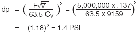 通過DN350, 壓力等級Class 900的壓力密封閘閥,水溫400oF,壓力為1500 PSIG,流速為5,000,000磅/小時的壓降是多少?