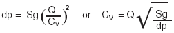 Where: dp = 壓降,單位:PSI dp = pressure drop in PSI Sg = 比重 Sg = specific gravity Q = 流速,單位:加倫/分鐘 Q = flow rate in GPM