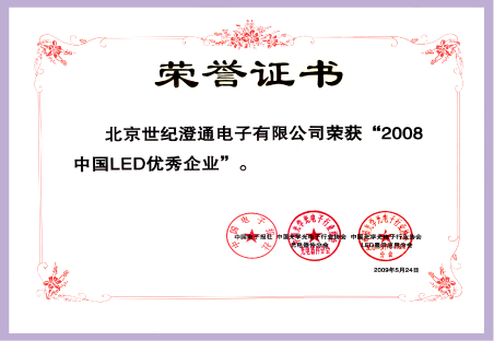 中國(guó)LED優(yōu)秀企業(yè)榮譽(yù)證書