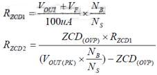 零電流檢測的電壓來自于輔助線圈上經(jīng)過電阻分壓的電壓,如下圖一所示。輔助線圈上電壓的相位和次級輸出線圈的電壓的相位是一致的。ZCD檢測的作用是檢測變壓器的往磁,當ZCD的電壓由高到低變化時會有個20mV的ZCD閾值電壓。ZCD管腳的電壓在芯片內(nèi)部會被鉗制在一個-160mV的漂移電壓。一個50ns到200ns的延時,可以通過增加連接在ZCD端口的電容CZCD得到,該延時可以使低級線圈的開關和初始線圈的電壓波形的波谷保持一致。