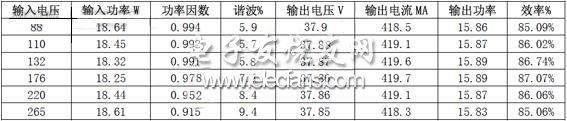 表一:基于AX6066+A433的18W(38V,420MA)應用方案測試數(shù)據(jù)(第一款諧波小于10%的應用方案。)