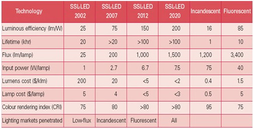 自從白光()于2000年始達到每瓦15~20流明的水平后,各國就開始積極對LED投進研發(fā)制造,而相關(guān)市場推廣、技術(shù)評鑒機構(gòu)及學(xué)界,則積極對此極具未來性的產(chǎn)品進行譯碼,一探其奧秘及貿(mào)易價值,并陸續(xù)提出負(fù)面疑問或爆炸性的前瞻猜測。 但隨著能源短缺、地球熱化、能源材料價格上揚等因素深受各國政府重視,更加速LED的市場熱度,其二為隨著手機白色于2003年被廣泛應(yīng)用,隨即奠定藍(lán)光激發(fā)產(chǎn)生在市場的價值,更因LED應(yīng)用在車尾燈可達到快速反應(yīng)、減少更換及設(shè)計上增加產(chǎn)業(yè)產(chǎn)品美學(xué)的新思維,漸漸開拓另一個市場應(yīng)用契機,進而激勵相關(guān)供給鏈廠商的研發(fā)投進。 固然在2003年時,LED亮度效能未能達到主的需求(表1),但已逐漸讓世界留意到LED的未來性及對傳統(tǒng)光源的威脅性。 表寧波生活商家1 OIDA對于2002~2020年LED效能預(yù)估