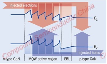 眾所周知,與雙極結(jié)型晶體管的基極相比,發(fā)射極的重?fù)诫s能阻止少數(shù)載流子注進(jìn)發(fā)射極。而在LED中,GaN和AlGaN層p型摻雜濃度低,阻礙了空***(p型區(qū)中空***為多數(shù)載流子)注進(jìn)有源區(qū)——這反過來加劇了電子的泄漏。