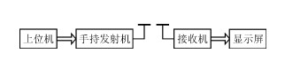 整個系統(tǒng)由三個相對獨立的子系統(tǒng)組成,即上位機、手持發(fā)射機、接收機和顯示屏系統(tǒng)。其結(jié)構(gòu)框圖如圖1所示。