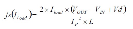 如果選定的電感值沒有使轉換器超過最大開關頻率,下一步就需要計算在額定負載電流時的開關頻率,可由下面公式得到: