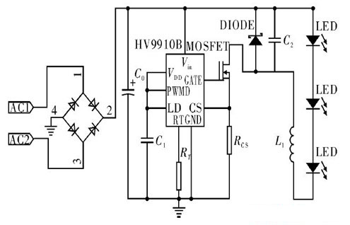 圖2 基于芯片HV9910B 控制的LED 驅(qū)動(dòng)電路