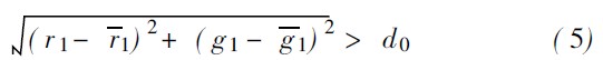 設(shè)測(cè)得的LED 像素點(diǎn)的亮度值為Y1, 色度坐標(biāo)為( r 1,g1) , 分析Y1、( ri , g1) 的離散性, 就能確定LED 顯示屏上亮度和色度不一致的LED 像素點(diǎn)。