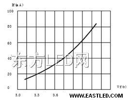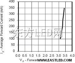 對于1W的大功率LED也是如此,圖2是某公司1W的LED伏安特征,而一個12V蓄電池的電壓,在布滿電到快放完電的電壓可以從14.5V降到10.5V。相差將近20%。從伏安特征上可以看出,電源電壓的10%的變更(3.4V-3.1V),就會引起正向電流的3.5倍的變更(從350mA變到100mA)。