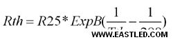 其中:, R25為熱敏電阻在25oC下的阻值,B為熱敏電阻的B常數(shù),熱敏電阻特征重要由這兩個參數(shù)決定;