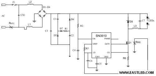 另一款具備溫度補(bǔ)償功效的SN3910重要用于高壓范疇的降壓型DC-DC恒流芯片,全電壓范疇輸進(jìn),外置高壓MOS管,輸出電流達(dá)700mA,芯片工作在恒定關(guān)斷時間模式,具有精良的線電壓調(diào)劑率。這款芯片重要用于日光燈計(jì)劃和其他市電直接接進(jìn)的計(jì)劃。矽恩微電子將根據(jù)不同客戶的利用計(jì)劃和溫度補(bǔ)償請求供給與之配套的利用電路、BOM表和布板建議,縮短產(chǎn)品上市時間。