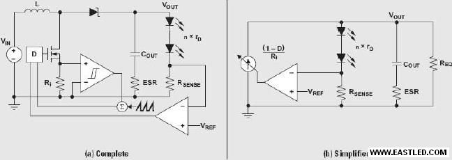 數(shù)學模型一直都有助于判定特定設計的最佳補償組件,然而,補償白光LED電流調節(jié)升壓轉換器的情況,則與補償被設定為調節(jié)電壓的雷同轉換器略微不同。以傳統(tǒng)的方法丈量把持回路相當不便,由于回饋(FB)引腳的阻抗不高,而且缺乏上端FB電阻。在Ray Ridley 展現(xiàn)了簡易小信號把持回路模型,實用于具備電流模式把持的升壓轉換器。下文闡明Ridley 模型應如何修正才干實用于白光LED 電流調節(jié)升壓轉換器,同時,也將闡明如何丈量升壓轉換器的把持回路。
