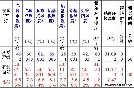 熱傳導的道路有三種,對流、傳導及輻射。在封閉的環(huán)境中,對流及傳導實現(xiàn)的可能較小,而通過輻射將熱散發(fā)出來,是日光燈管考慮的重點。以下是我們做的LED 日光燈管的測試數(shù)據(jù),在LED 銀腳焊點外測出的溫度才58度