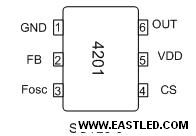 PT4201供給SOT-23-6封裝,引腳排列見圖1。