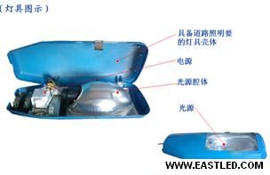 傳統(tǒng)照明路燈整體包含;光源,光源腔體,電源,具備道路照明請(qǐng)求的燈具殼體。