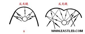 鈉燈球面光源特征,其兩翼展開(kāi)的亮度光效率的有效利用,反射罩的質(zhì)量決定著燈具的整體效率,也取決于反射罩的氧化壽命(光源腔體的溫度接近200℃左右)。一般的反射器由于陽(yáng)極化處理的瓶頸,經(jīng)過(guò)光源腔的高溫烘烤,很快變色,反光后果加速下降,工作一段時(shí)間后大部分的光線在中間段,易造成暗區(qū)形成斑馬效應(yīng)。 燈具的殼體是起散熱、防護(hù)功效,其流線型的造型設(shè)計(jì)需具備道路照明防風(fēng)阻請(qǐng)求。因其氣體放電燈的局限性,造型多為“蛇頭狀”功效性照明燈具。