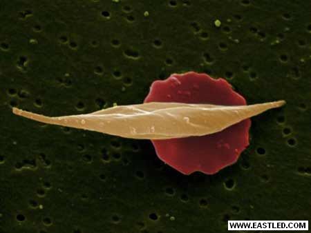 鐮狀細(xì)胞貧血癥血紅細(xì)胞 這張圖片顯示了兩個(gè)血紅細(xì)胞。背景中顯示的一個(gè)正常的紅細(xì)胞,而前景顯示的是一個(gè)受到鐮狀細(xì)胞貧血癥沾染腐化的血紅細(xì)胞。鐮狀細(xì)胞貧血癥是一種血液疾病,可導(dǎo)致細(xì)胞形成特別的外形,從而轉(zhuǎn)變其攜帶血紅蛋白的才能。 鐮狀細(xì)胞貧血是20世紀(jì)初才被人們發(fā)明的一種遺傳病。1910年,一個(gè)黑人青年到醫(yī)院看病,他的癥狀是發(fā)熱和肌肉疼痛,經(jīng)過(guò)檢查發(fā)明,他患的是當(dāng)時(shí)人們尚未熟悉的一種特別的貧血癥,他的紅細(xì)胞不是正常的圓餅狀,而是曲折的鐮刀狀。后來(lái),人們就把這種病稱(chēng)為鐮刀型細(xì)胞貧血癥。鐮刀型細(xì)胞貧血癥重要產(chǎn)生在玄色人種中,在非洲黑人中的發(fā)病率最高,在意大利、希臘等地中海沿岸國(guó)家和印度等地,發(fā)病人數(shù)也不少。