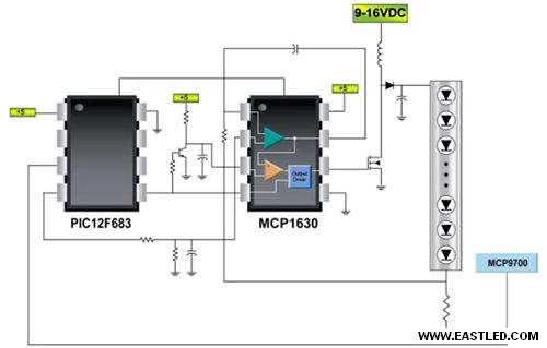 應(yīng)用多個(gè)恒流驅(qū)動(dòng)拓?fù)鋪?lái)履行所需的功率轉(zhuǎn)換,隔離、功率因子校訂和/或僅改良現(xiàn)有解決計(jì)劃可能都需要應(yīng)用兩級(jí)處理。輸進(jìn)電壓首先下降到中間電壓,在此級(jí)應(yīng)用傳統(tǒng)技巧滿(mǎn)足功率因素校訂(PFC)和高電壓隔離請(qǐng)求,而第二級(jí)負(fù)責(zé)滿(mǎn)足LED電流和溫度把持請(qǐng)求。圖2顯示一個(gè)智能LED解決計(jì)劃,它在恒流配置中采用升壓轉(zhuǎn)換器MCP1630。一個(gè)小型的8位微把持器可供給機(jī)動(dòng)的時(shí)鐘源、可程序化電流設(shè)定點(diǎn)(為了使驅(qū)動(dòng)電路符合不同的LED模塊規(guī)范)以便進(jìn)一步節(jié)儉功耗的調(diào)光功效,還供給應(yīng)用遠(yuǎn)程溫度傳感器(整合的溫度傳感器如MCP9700或熱敏電阻)進(jìn)行的逝世循環(huán)溫度把持。